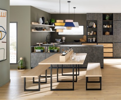 La decoración de la cocina en U, como la de todas las cocinas, es una cuestión de colores, materiales y accesorios. No hay restricciones y es posible optar por el estilo moderno, de diseño o contemporáneo sin ningún problema. Aunque la disposición de esta configuración sigue siendo bastante clásica, hay muchas opciones para crear una decoración más original: la adición de un aparador gráfico o de un suelo de mosaico basta a veces para ambientar una cocina en U.