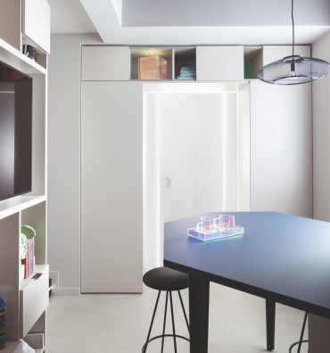 Al delimitar el espacio con este rojo vivo que enmarca el asiento, todas las miradas están puestas en la entrada. Afirma su personalidad y marca la pauta para conseguir un efecto visual impresionante y particularmente interesante. ¡Los propietarios son valientes y se atreven con el color!