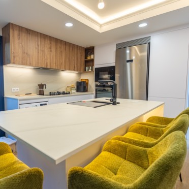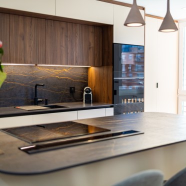 Te asesoramos en la elección de materiales —laminados, lacados, madera, porcelánicos o cuarzo— y en la integración de electrodomésticos para lograr un conjunto equilibrado y coherente.